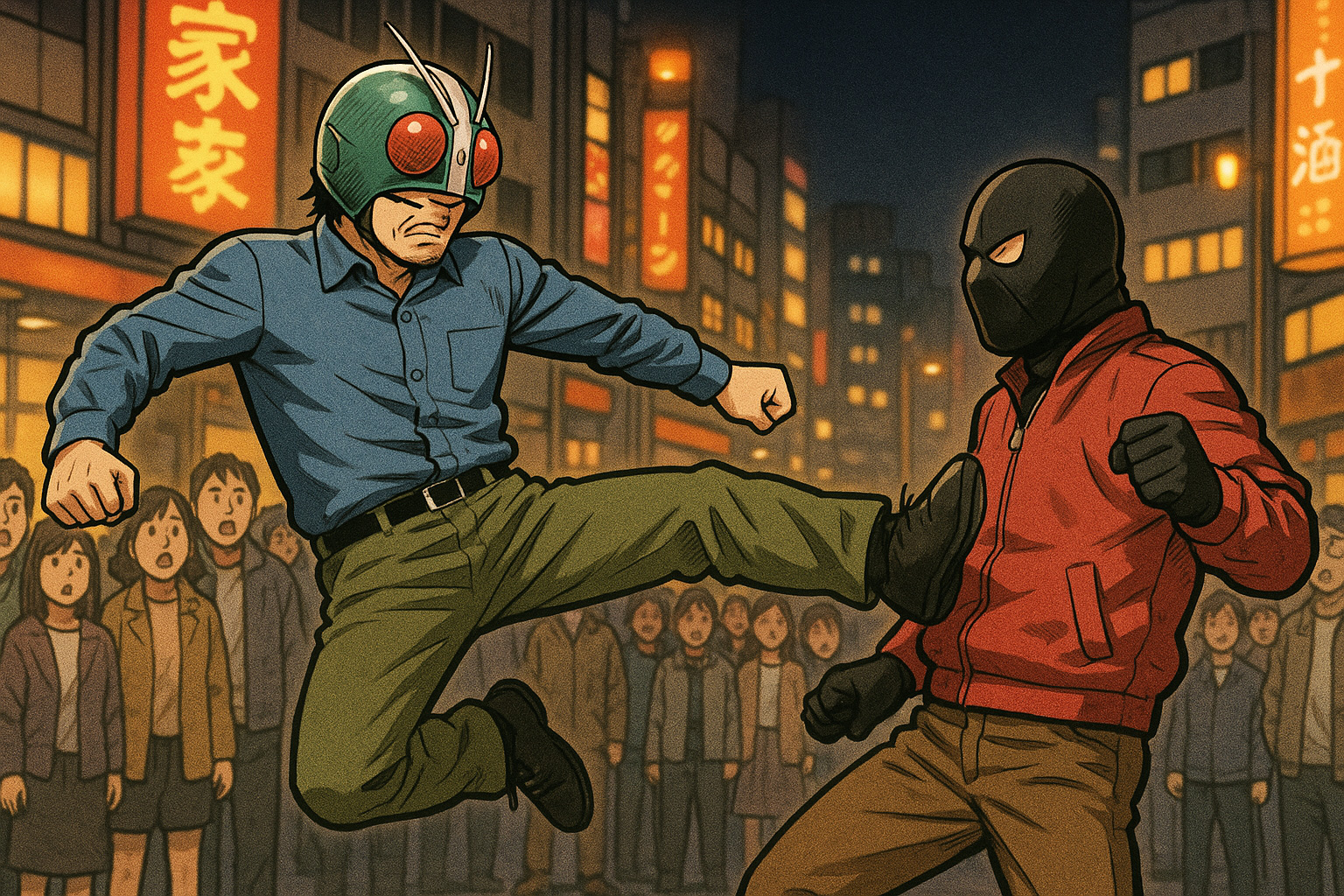 漫画『東島丹三郎は仮面ライダーになりたい』は、中年男・東島丹三郎が子供の時に思い描いた仮面ライダーになりたいという純粋すぎる夢を追う異色のヒーローコメディです。ライダーになるため日々鍛錬に費やしていたが現実を見れば40歳の独身、集めていたグッズも処分しショッカーはいないという現実と向き合うはずだったが・・・ある日たまたまショッカー戦闘員のマスクを被った強盗に出くわし鍛えた体でこれを撃退する。